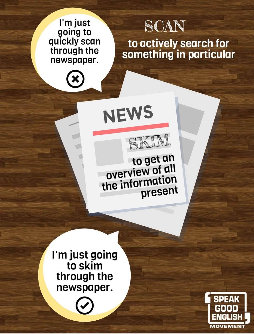To the Movement, 'I'm just going to quickly scan through the newspaper' is wrong. They say the word 'scan' means 'to actively search for something in particular'. Hence, they say you can't just quickly scan through a document.